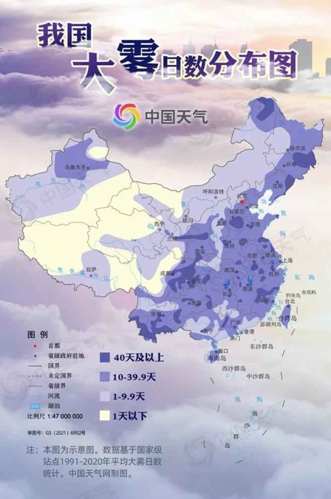 我国雾的分布具有明显的地域差异和季节特征,如下图。长江中游、云贵高原和东部沿海一带是我国主要的多雾区域,其中四川、贵州、云南、江苏、安徽、浙江等地大雾日数较多,部分山区年雾日甚至超过200天。而青藏高原-南疆-河西走廊-河套-内蒙一带全年雾日稀少,属于典型的少雾区。雾多发生在河谷、盆地、沿海和高山地区,而在高原、荒漠及风口地区则较为少见。
