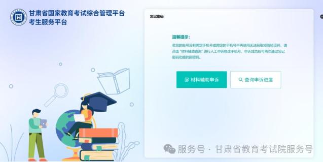 (3)网上办理。点击“忘记密码”,输入身份证号及验证码后下一步,在修改密码界面左下角点击 “材料辅助申诉”,申请修改手机号,申诉成功后使用新手机号找回密码;若账号从未绑定过手机号,系统会提示 “没有绑定手机号,无法进行密码找回”,需通过 “材料辅助申诉” 绑定手机号,具体流程如下: