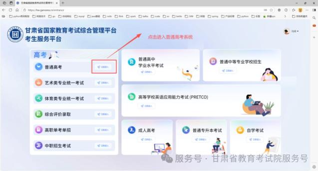 五、高考报名考生成功登录系统后,在首页找到 “普通高考” 板块,点击 “立即进入”,进入普通高考系统。