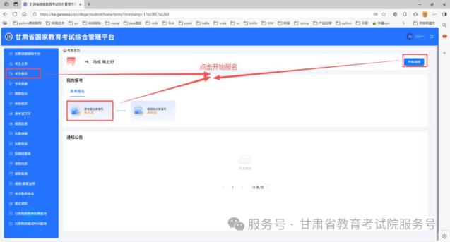 在普通高考系统界面,点击 “考生报名” 菜单下的 “高考报名” 选项,启动报名流程。