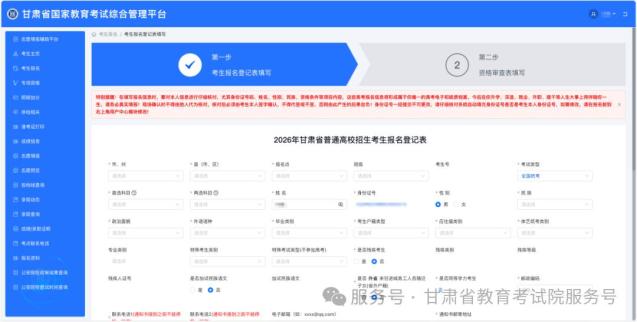 温馨提示:已参加高考的往届生或已拥有甘肃省国家教育考试综合管理平台账号的考生,无需重复注册,可直接登录系统参与报名。