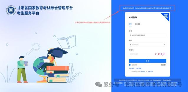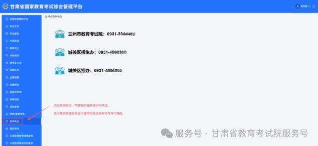 未登录系统用户可通过登录界面上方提供的“2026年甘肃省教育考试招生机构高考咨询电话”表自行查阅。