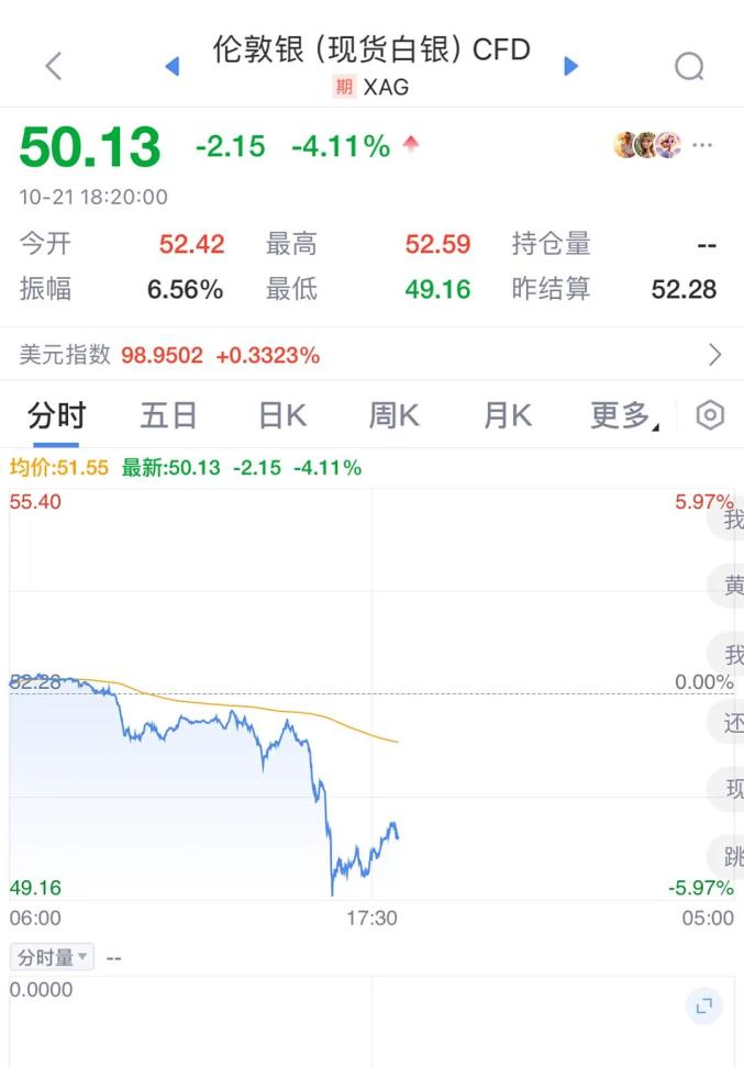 10月21日,黄金白银再次急跌。