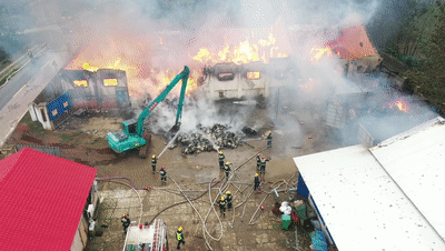 消防员架设水枪阵地持续压制火势紧张的救援过程中,消防员敏锐发现火场紧邻另一处重要仓库,受仓库内空气不流通、散热受阻影响,该仓库内堆积的棉花已出现阴燃,存在火势蔓延与复燃的双重风险。