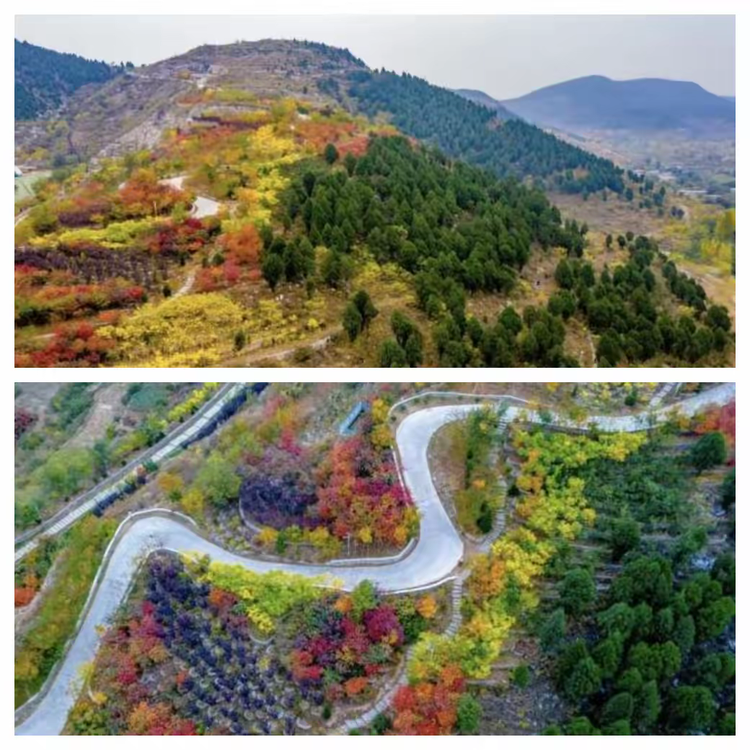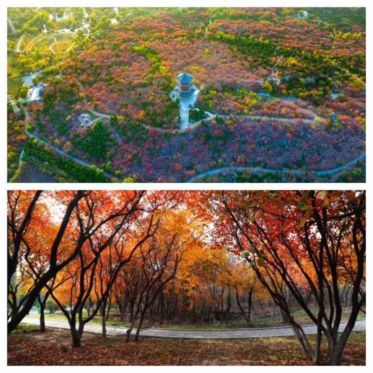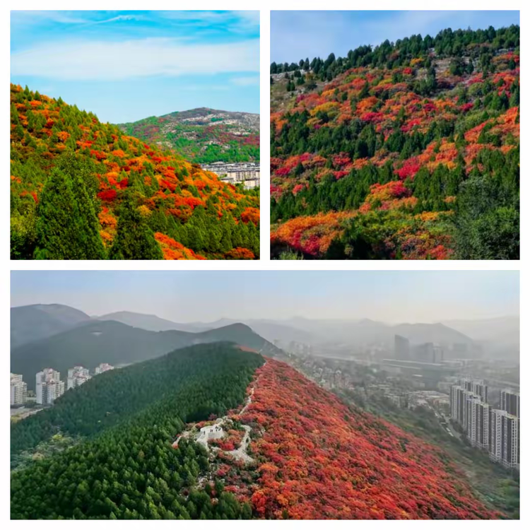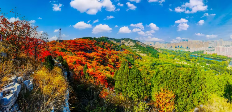 英雄山的红叶景观独具特色,以黄栌、五角枫、元宝枫撑起一片红火,与赤霞广场、留春园的银杏、法桐、黄山栾、黄金槐等同步焕彩,不同色彩交织辉映,勾勒出满溢活力的秋日画卷。