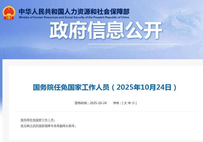 原标题:《国务院:免去韩占武国家烟草专卖局副局长职务》