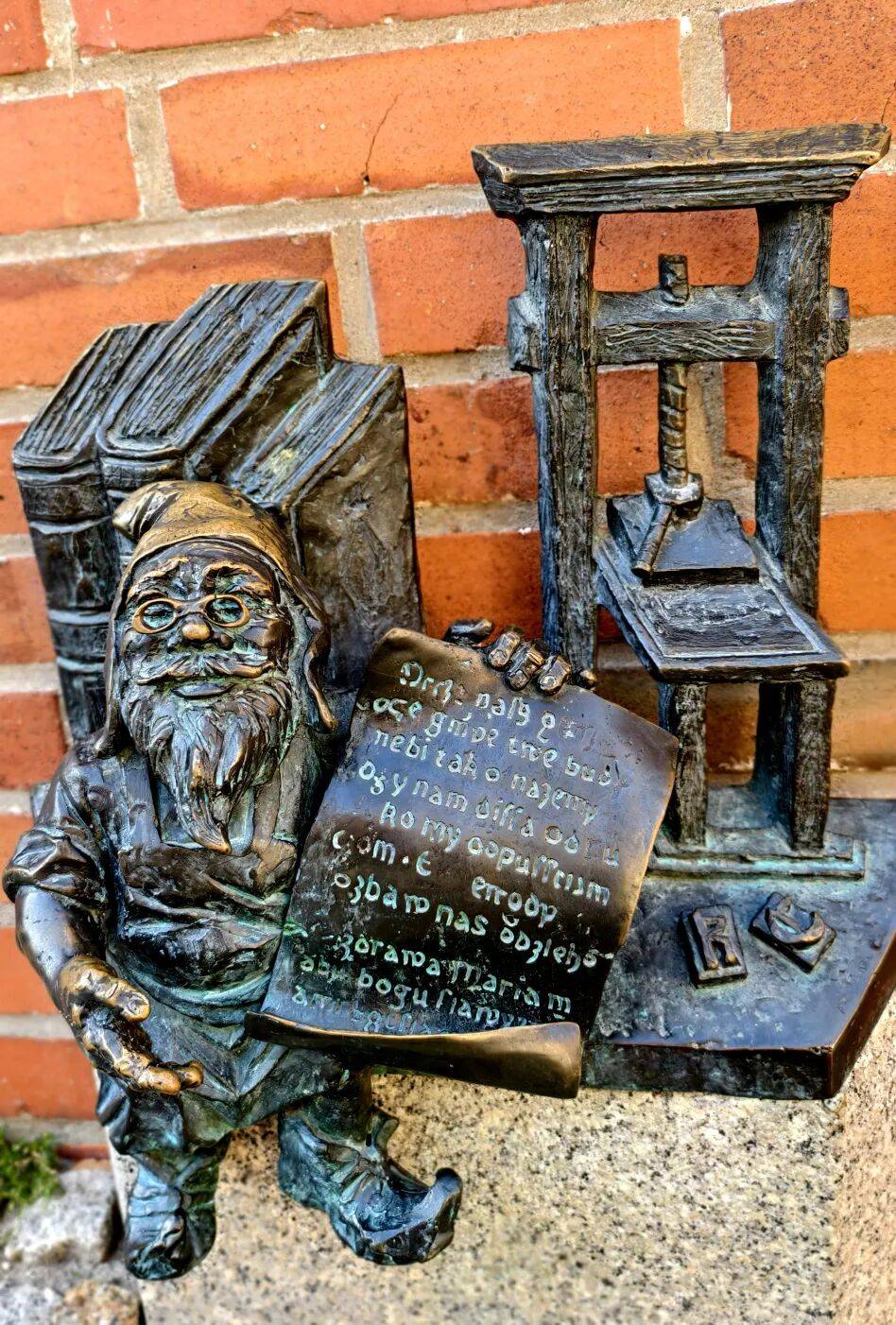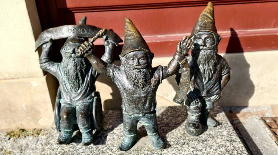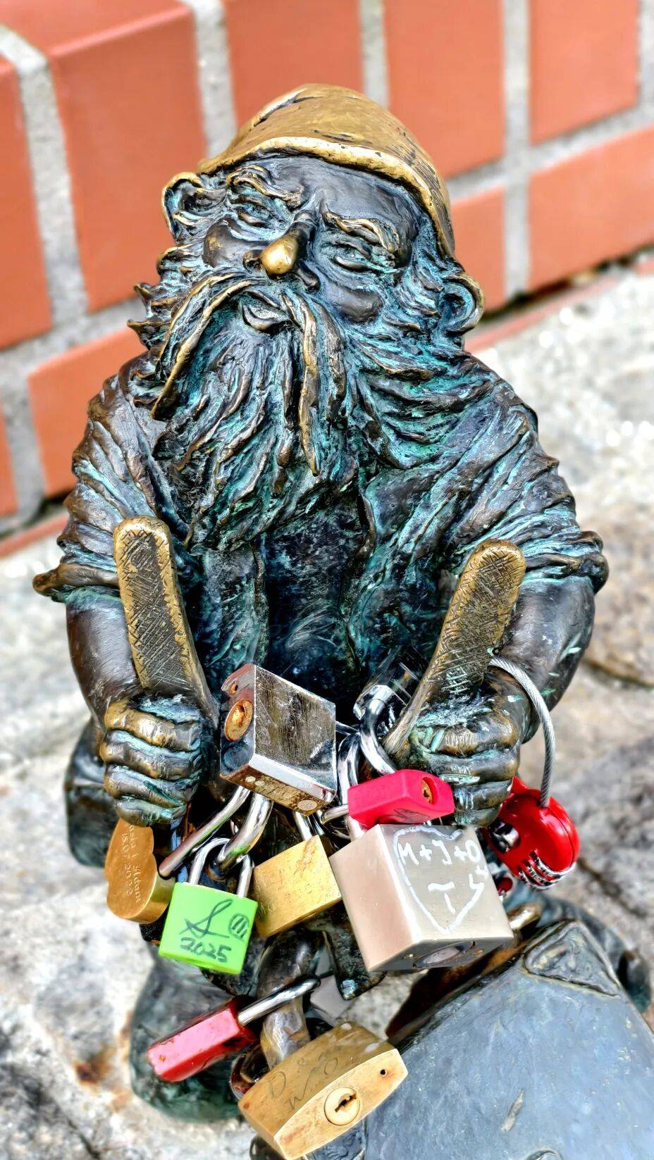 注:在弗罗茨瓦夫古城中,有铜塑袖珍人逾千个遍布各处。其造型生动可人,为古城微雕塑,颇惹旅客喜欢。