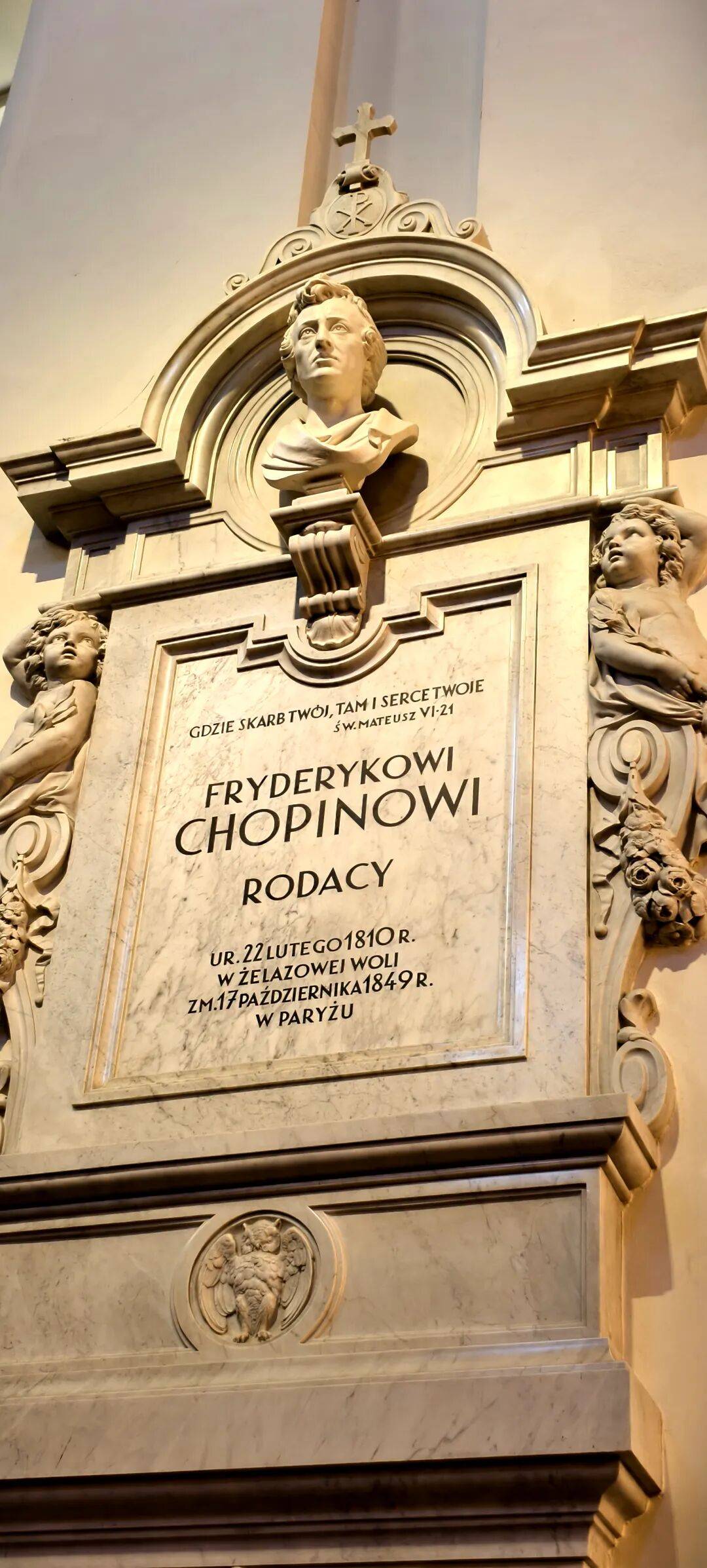注:肖邦,波兰著名钢琴作曲家,七岁有作品问世,死后心脏安置在圣十字教堂厅柱里。