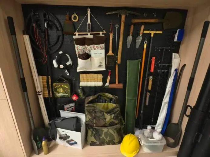 不同的盗墓工具。上游新闻记者 时婷婷 摄如今,文物倒卖也进入了“网络时代”,社交、短视频平台上的线索也逐渐进入办案人员的视线。同时,他们还在学习“大数据”知识,希望能运用现代刑侦技术对文物犯罪积案进行攻坚,让散失的珍贵文物重见天日。一名办案民警望着办公室墙上的拓片说:“我很希望能有更多的民警喜欢文物,了解文物,让更多力量加入到专业打击文物犯罪的行列中来。”