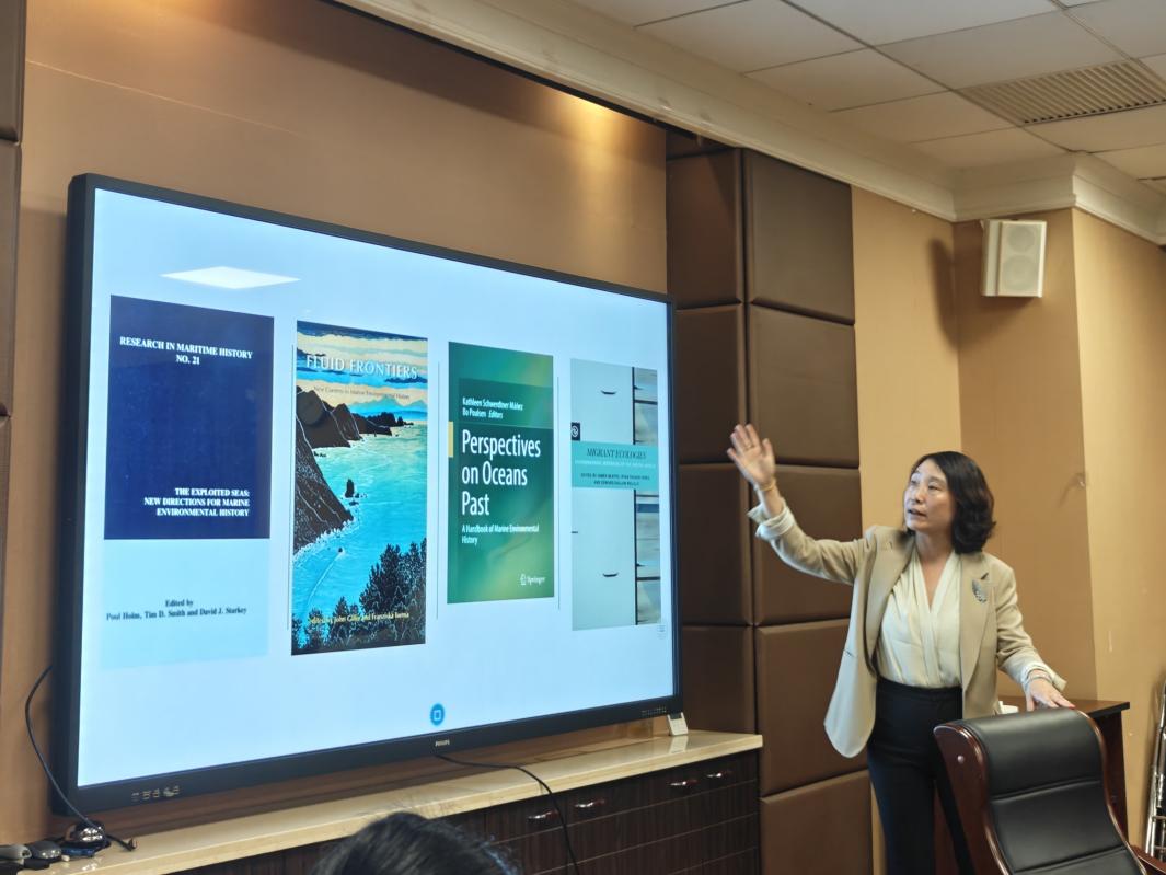 同时,侯深教授简要介绍了自己的新书构想。她将围绕“向海而生”这一主题,开展青岛与洛杉矶的环境史研究,探讨太平洋的深历史(deep history)与海洋城市经历的联系,并从太平洋世纪的到来与城市的出现、海洋的诱惑与城市的生机、危险的海洋与城市的困境、行星城市的崛起与现代世界的衰落等方面分享了自己的思考。