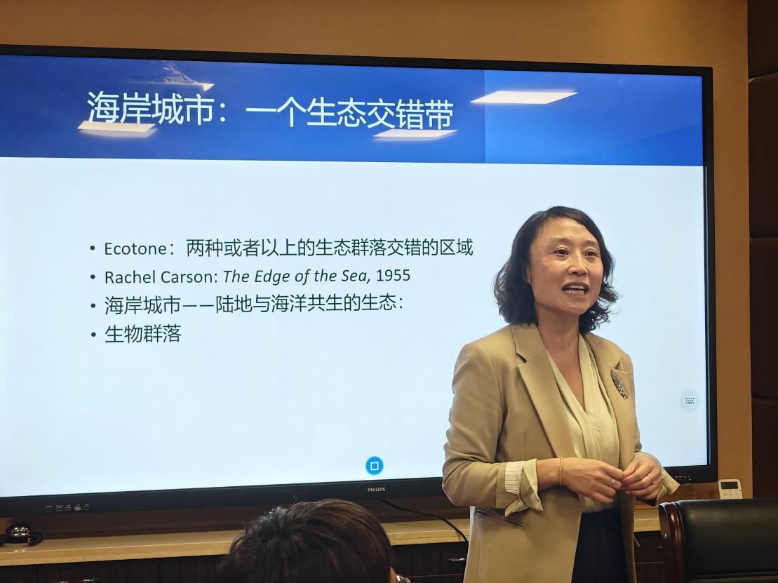 随后,侯深教授以自己的家乡青岛的衣食住行为例,讲述陆地与海洋的共生状态。同时,侯深教授强调,我们应当关注海洋与城市(而非仅海岸城市)的关系。