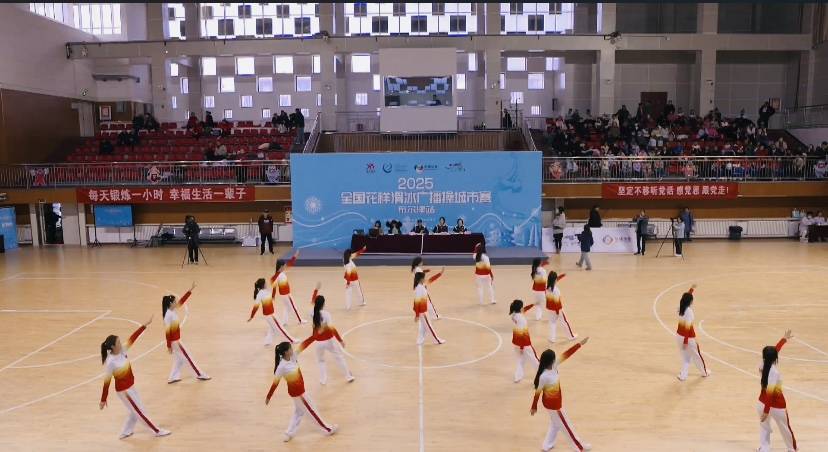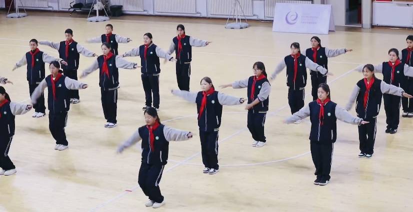 赛场上,参赛队员伴随着悠扬的音乐翩翩起舞,步伐轻盈,动作流畅。