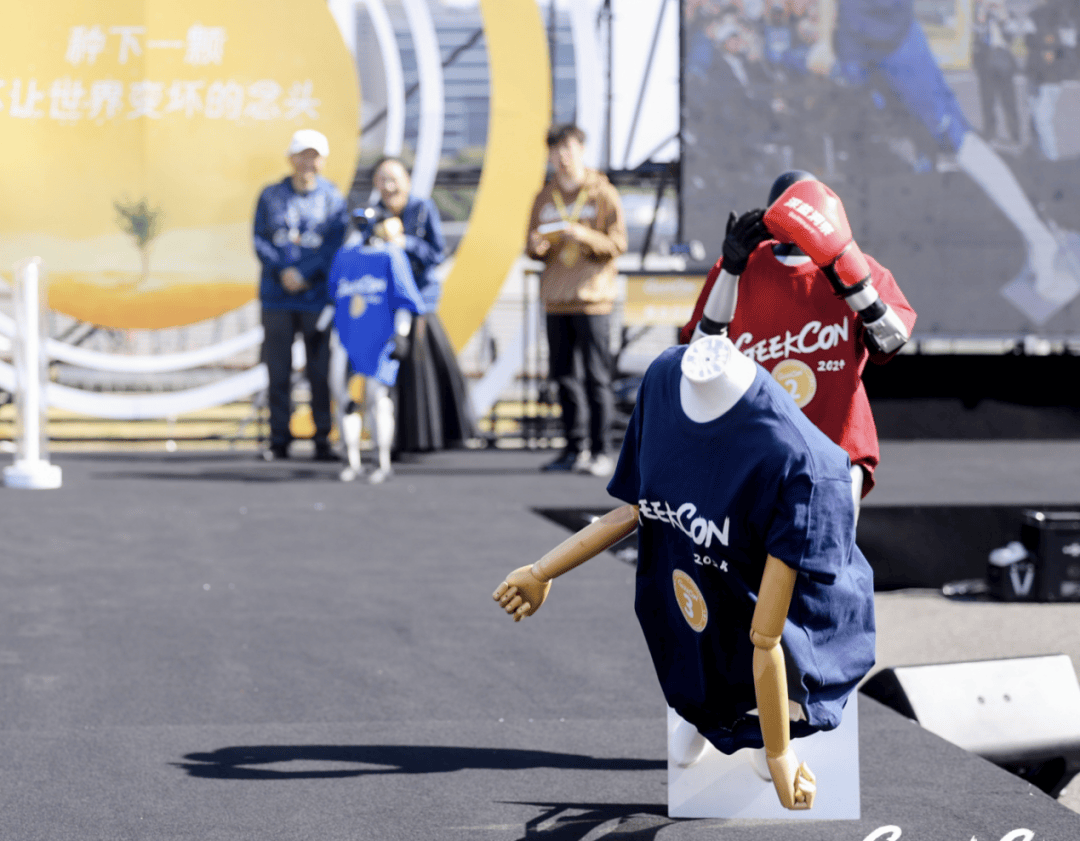 更令人担忧的场景随即出现:被控制的一号机器人缓缓走向未联网的二号机器人,在距离半米处停下。几秒钟后,二号机器人的头部指示灯也突然变红,这意味着,攻击指令实现了“跨机器人传播”。没过多久,二号机器人按照挑战者的指令,挥拳击中了舞台旁的假人,完成了全部挑战。