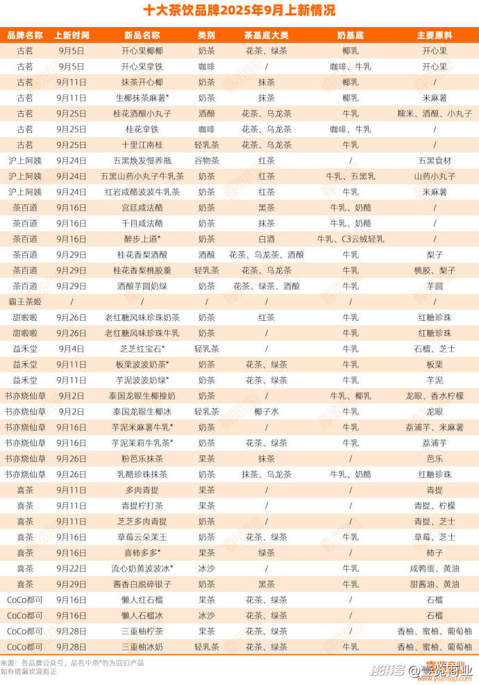 上新数量创近半年新低,9月茶咖们在干啥