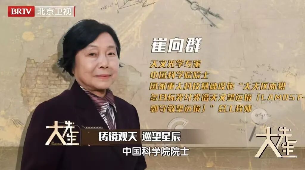《大先生》第四季第八期有幸邀请到了“铸镜观天”的天文光学专家、中国科学院院士、国家重大科技基础设施“大天区面积多目标光纤光谱望远镜(LAMOST——郭守敬望远镜)总工程师崔向群,让我们一起走进她与星辰为伴的五十余载岁月,聆听她如何率领团队,用一面“会呼吸”的巨镜,为中国建造了一扇通往宇宙深处的新窗口,让中国在洞察银河、破译星辰起源的征途上,从追随者跃升为引领者。