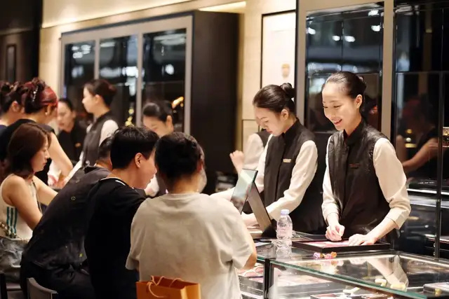 新闻时评人,眺远咨询董事长兼CEO高承远也认为,老铺黄金之所以能维持自身奢侈品定位,在工艺、渠道、会员池方面都藏着门道。工艺自然不用说,老铺黄金自称是中国第一家推广古法黄金概念的公司,花丝、錾刻、镶嵌、烧蓝等非遗工艺都是它的护城河。在选址上,老铺黄金把店开在SKP、万象城等位置,与爱马仕、LV做邻居,天然获得奢侈品的“场域背书”,只要商场有客流,它就拥有稳定的“私域基本盘”。