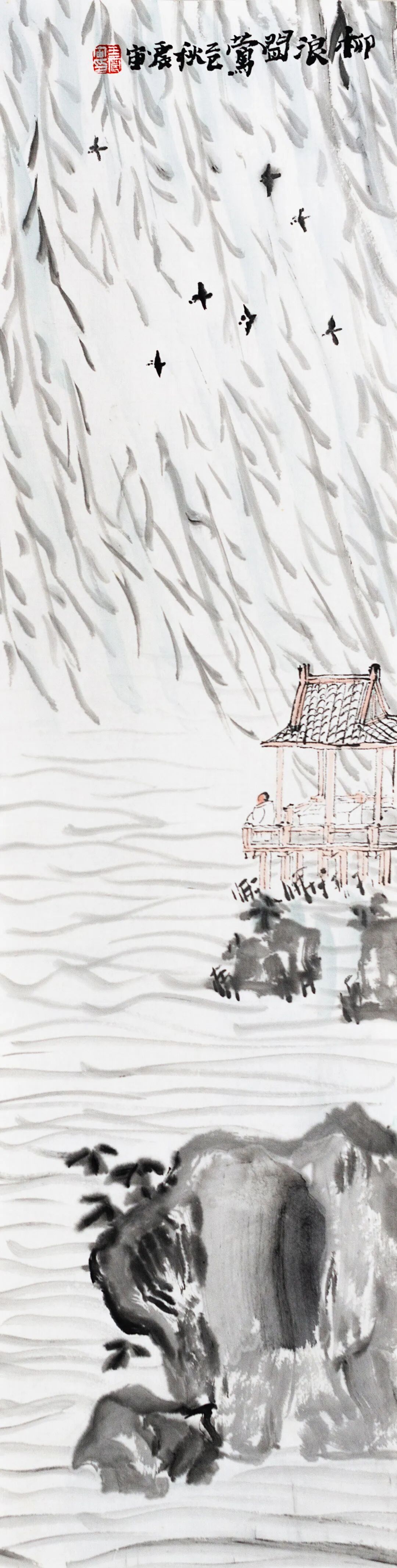 ◎柳浪闻莺-纸本设色-68x17cm-2025