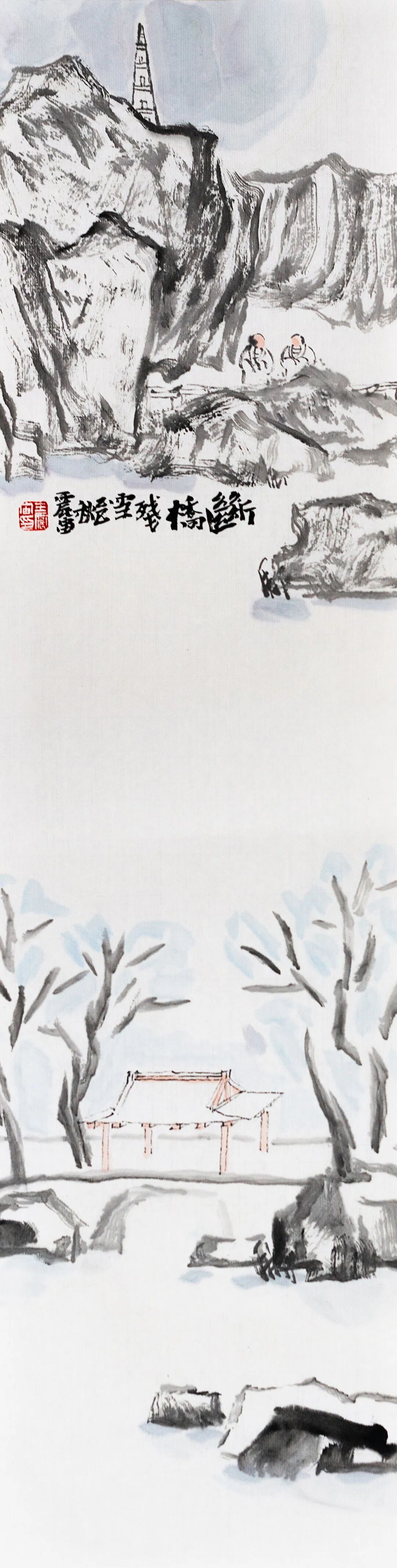 ◎断桥残雪-纸本设色-68x17cm-2025
