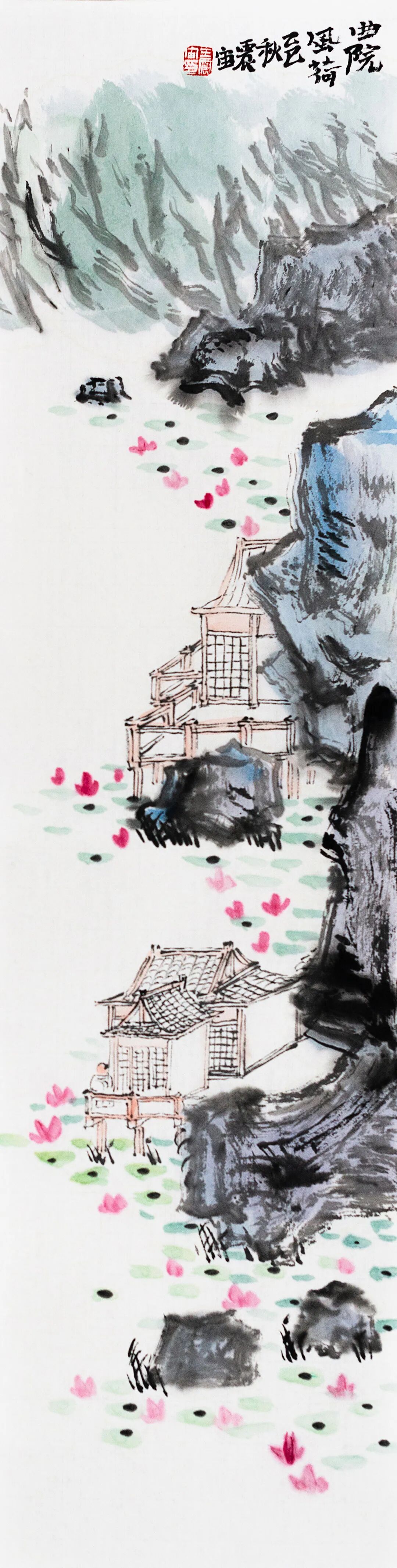 ◎曲院风荷-纸本设色-68x17cm-2025