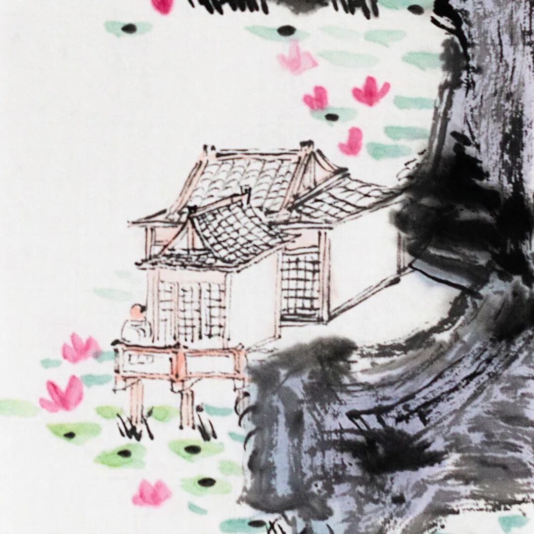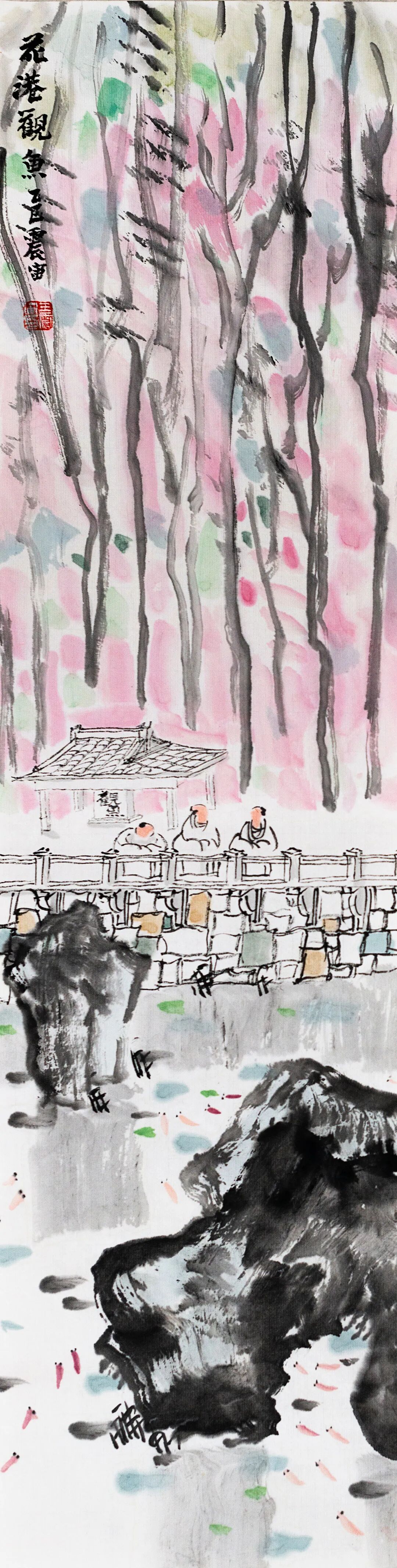 ◎花港观鱼-纸本设色-68x17cm-2025