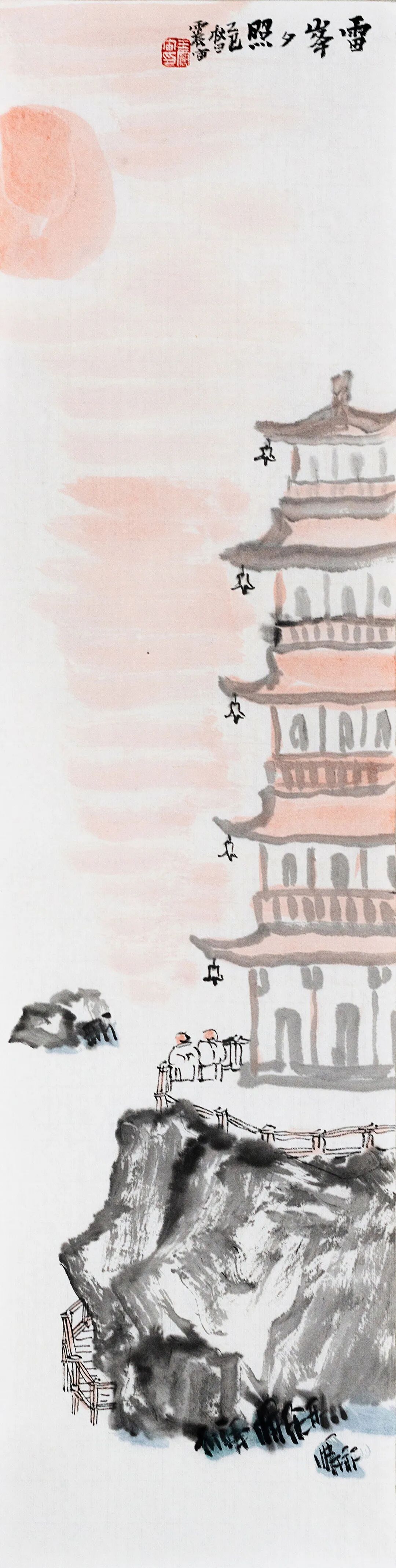 ◎雷峰夕照-纸本设色-68x17cm-2025