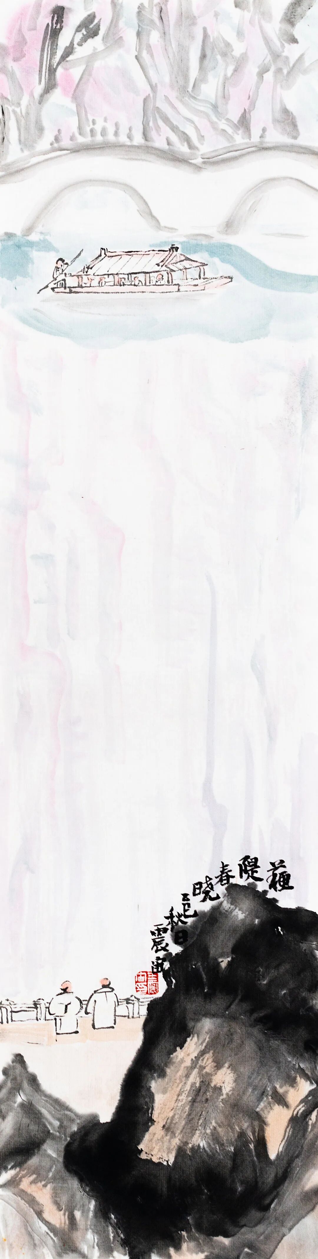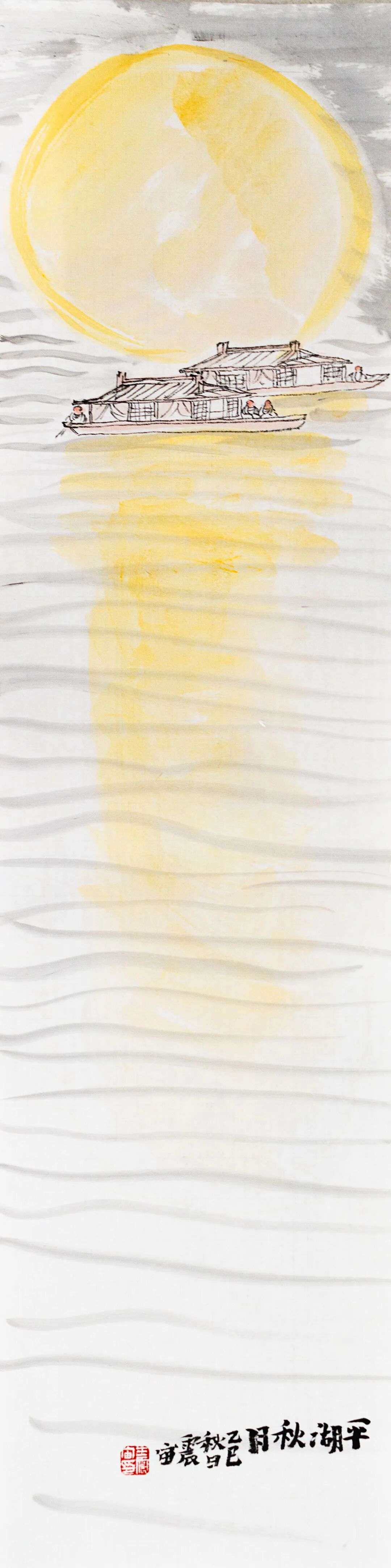 ◎平湖秋月-纸本设色-68x17cm-2025