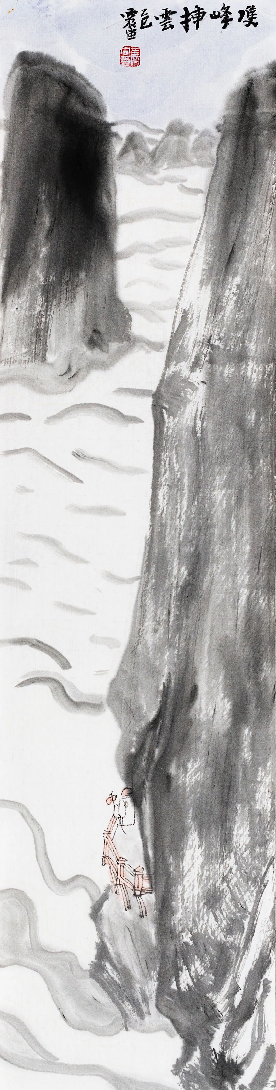 ◎双峰插云-纸本设色-68x17cm-2025