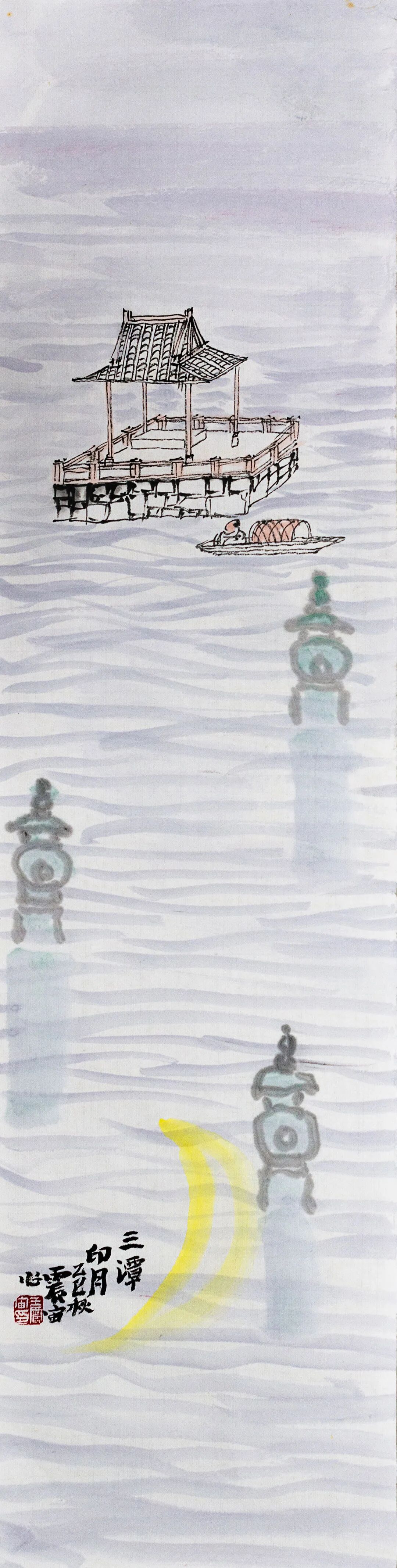 ◎三潭印月-纸本设色-68x17cm-2025