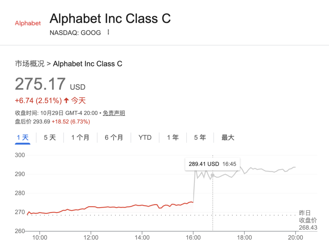 财报发布后,谷歌的股价在盘后猛增,达到每股293.69美元,以此计算,市值达到了3.55万亿美元,增长了3000多亿美元(超2万亿人民币)。
