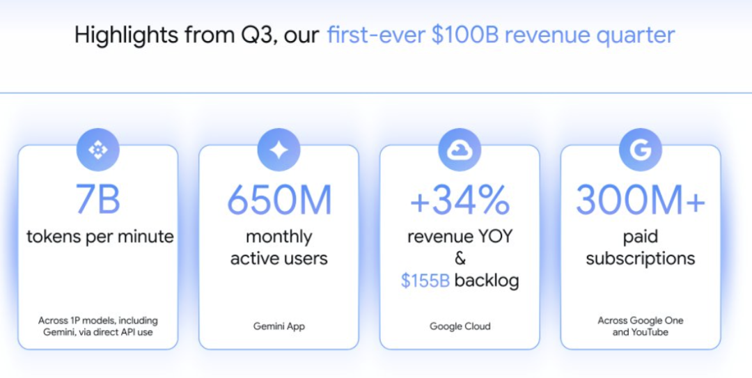 谷歌营收被Nano Banana带飞!季度首破千亿美元,Gemini APP月活6.5亿