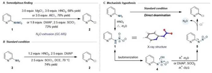 理论与机制深度:研究不仅提供了新的方法,还通过实验和理论计算,揭示了N-硝胺中间体的反应机理。这种对深层机理的探索,增加了成果的理论价值,而不仅仅是技术上的改进。