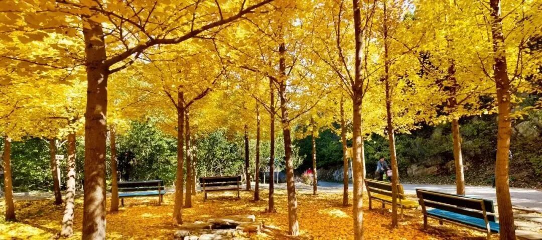 你可以坐在长椅上,看金色的叶子缓缓飘落;也可以漫步其中,让秋日的阳光和落叶与你作伴,感觉整个世界的节奏都慢了下来,特别治愈。