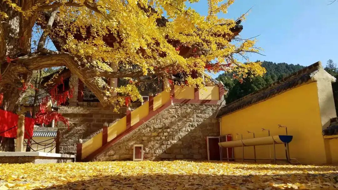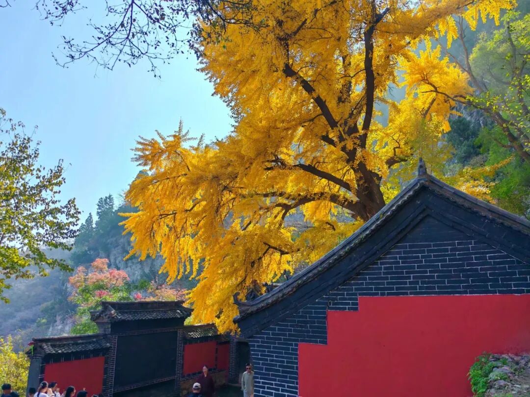 唐山寺内那株2700余年的“银杏王”,枝繁叶茂如撑开的巨伞,青瓦飞檐映着金黄叶片,风一吹,落叶簌簌如蝶舞,踩在厚厚的叶毯上,仿佛能听见时光的回响。