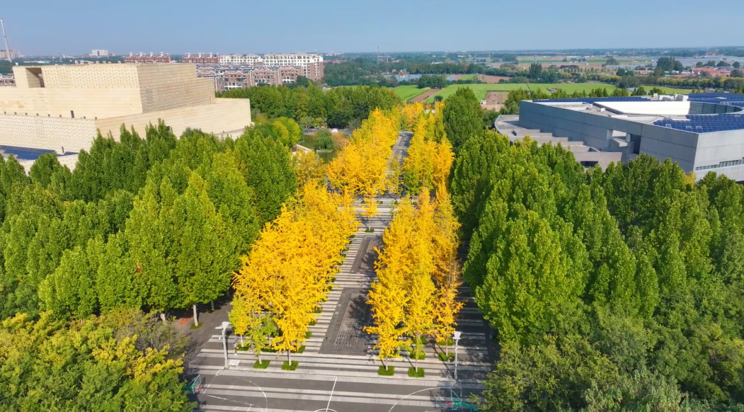 在充满厚重历史感的临淄,秋色也显得格外有诗意。齐文化博物馆门前的银杏树,是这里秋日的点睛之笔。
