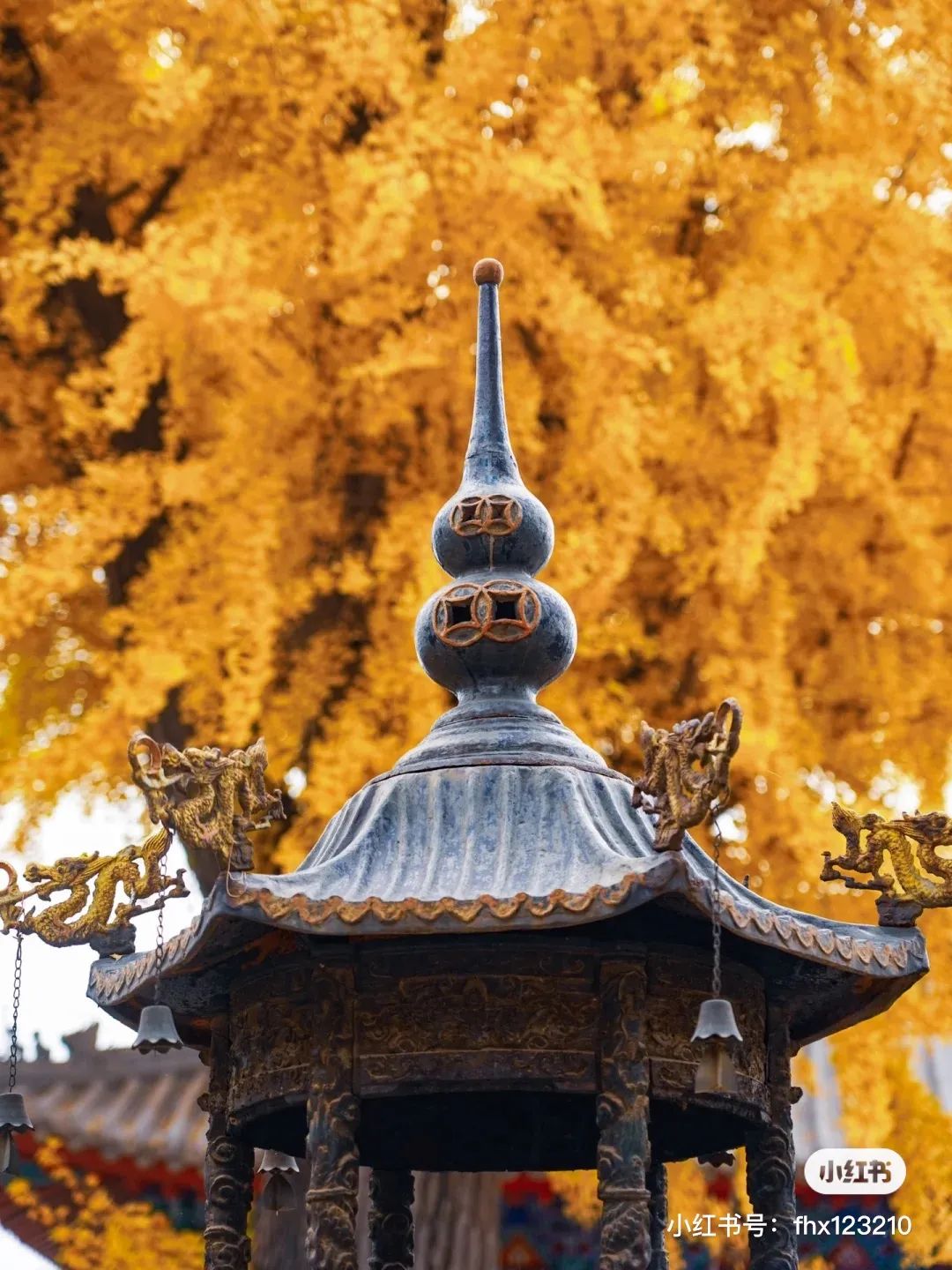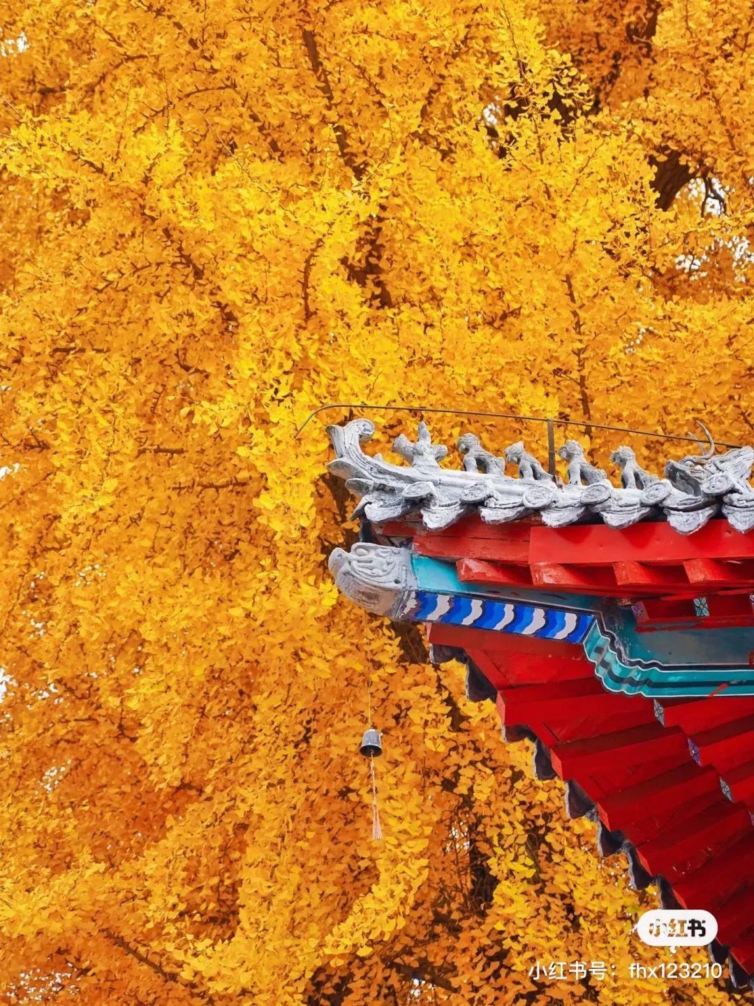 当金黄的银杏遇上红墙黛瓦、古寺香火,那便是中式美学顶级的浪漫。