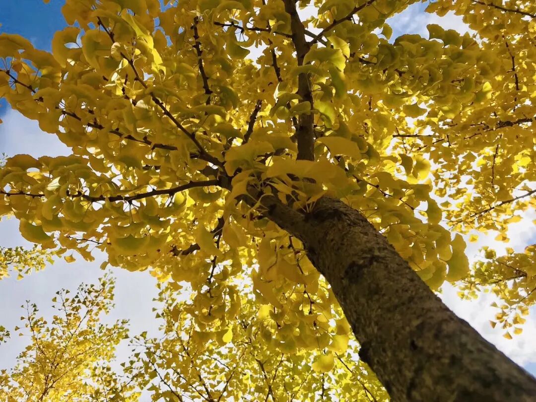 微风拂过,满树金叶簌簌作响,仿佛在低声讲述千年的故事。片片落叶如同金色的蝴蝶,静静扑向大地,那一刻,整个秋天的浪漫与厚重,仿佛都栖息于你的掌心。来这里,不只是赏叶,更像是一场与历史的对话。