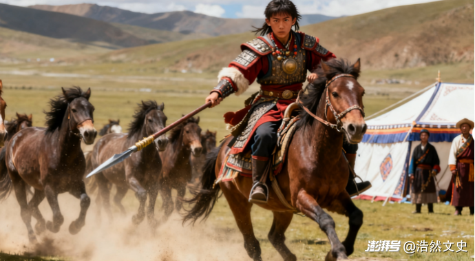 他的父亲囊日论赞,是吐蕃第三十二代君主,也是一位极具雄才的领导者。作为囊日论赞唯一的儿子,松赞干布生来就肩负着继承大统的使命,因此从小便享受着精心的培养与严格的训练。年少时的松赞干布就展现出过人的天赋,《新唐书·吐蕃传》描述他“为人慷概才雄,常驱野马犀牛,驰刺之以为乐”;后世的《白史》也说他“才智勇武,通达工艺、历算、武技”。