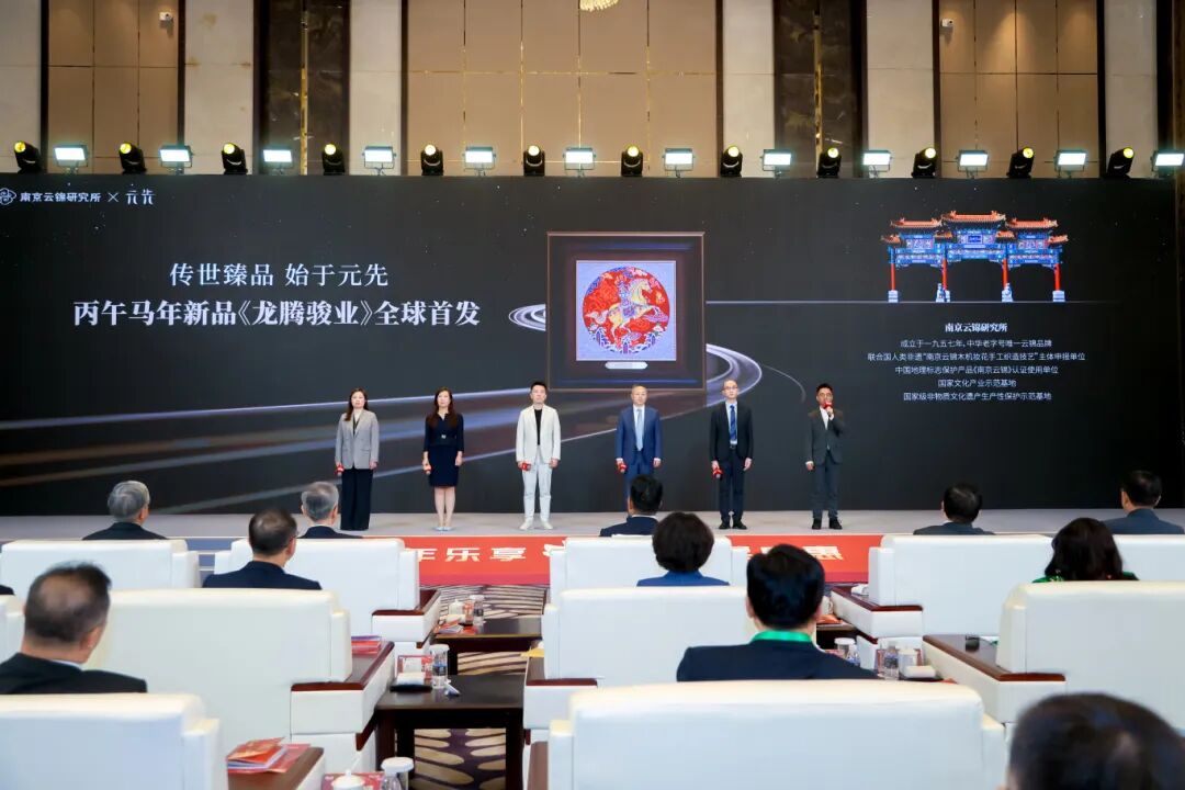 南京云锦研究所作为全国老字号企业的三家代表之一,从一千四百多家老字号企业中脱颖而出,不仅上台进行了产品推介和发言,还在现场首秀了马年新品《龙腾骏业》,极大提升了南京老字号的品牌价值。