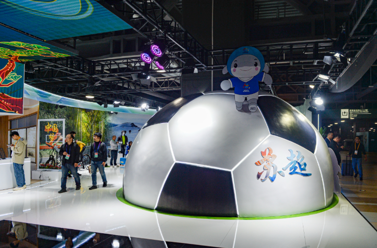 首秀现场,除了首发南京云锦研究所的“红地织金百鸟朝凤柿蒂妆花吉服”“龙腾骏业”,还首发了十竹斋的新品“‘苏超’定制笺画文创”、南京肥皂的新品“‘国民足球,国民zao’同甡桂冠·足球皂”,让大家大饱眼福。
