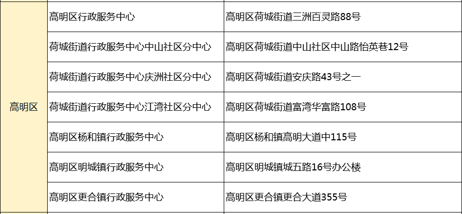 服务窗口办理(高明区)
