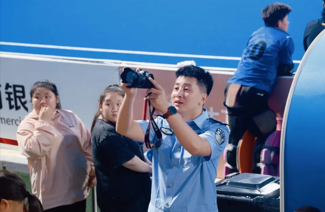 2025年6月27日,全国男子曲棍球锦标赛决赛在中国达斡尔民族园拉开帷幕。在赛事安保工作中,莫力达瓦达斡尔族自治旗公安局民辅警始终践行“服务不缺位”理念,在严格维护现场秩序的同时,积极为群众排忧解难。执勤民警往来穿梭、热情引导,耐心解答各类问题,以细致周到的服务赢得广泛赞誉;同时,他们还见缝插针地开展反诈、反恐等安全宣传,寓教于乐、宣防结合,成为赛场外围一道温暖而坚实的平安风景线。图为赛事中场期间,莫力达瓦达斡尔族自治旗公安局政工室民警乔宏达在拍摄民警开展普法宣传时被镜头定格下的工作瞬间。