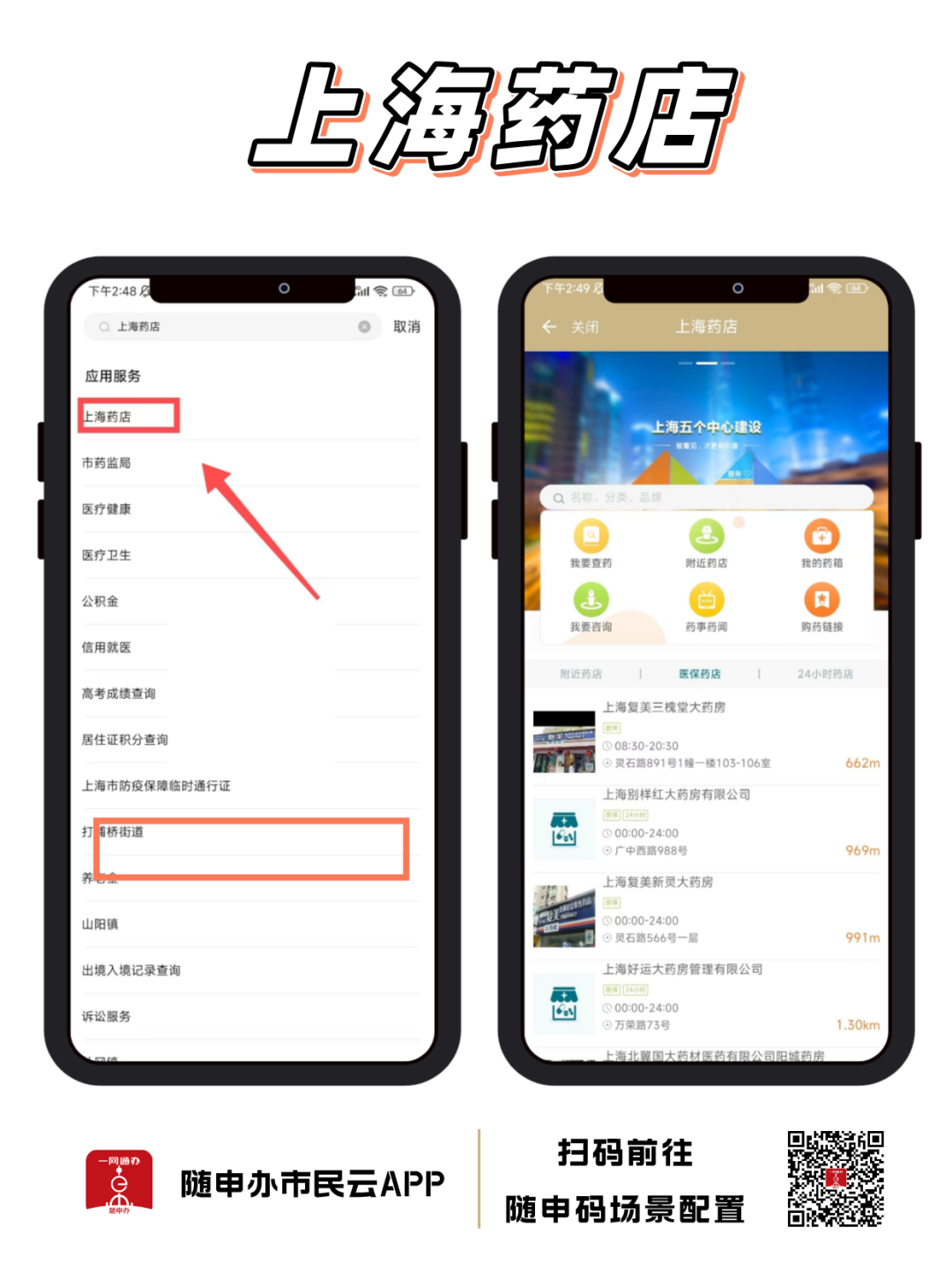 “随申办市民云”APP【上海药店】服务,覆盖全市4千多家药店,提供在售信息一键检索,还新增公益药学服务功能购药网站入口等。