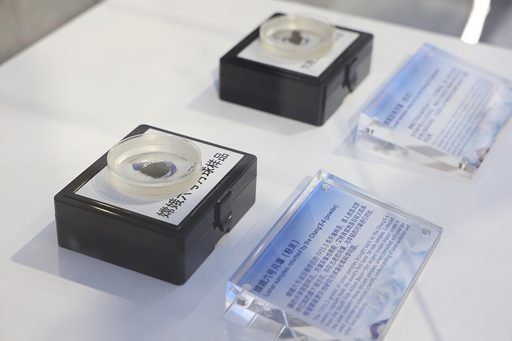嫦娥五号月壤和嫦娥六号月壤样品是本届中国馆最珍贵展品,也是月壤样品首次在进博会上展出。现场工作人员介绍,嫦娥五号返回器带回的1731克月壤样品是人类首次获得的月表年轻火山岩区样品,嫦娥六号返回器带回的1935.3克月壤样品则是人类首次获得的月球背面样品,两种月壤对比,有望帮助更好地研究月球演化等科学问题。