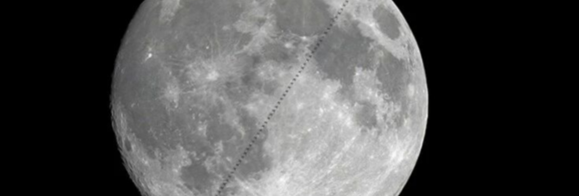 11月4日,北京市昌平区东小口城市休闲公园拍摄的中国空间站飞过圆月的过程。(堆栈合成照片)