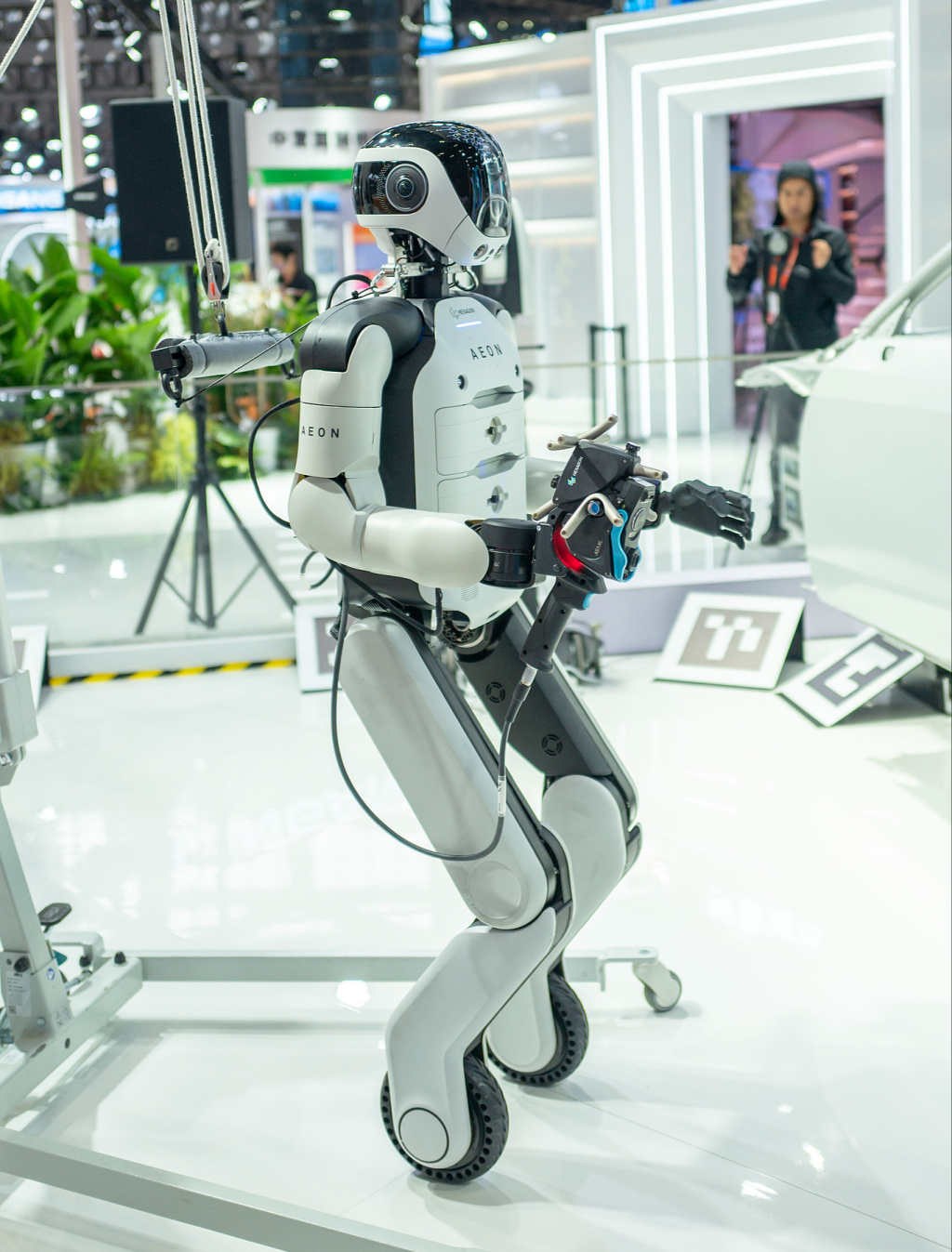 2025年11月4日,上海第八届进博会, 海克斯康(Hexagon)展台展示的AEON工业人形机器人。视觉中国 图