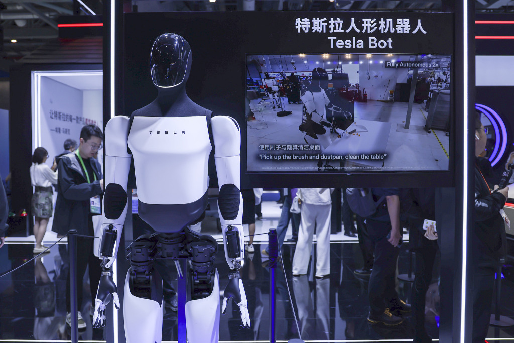 2025年11月7日,第八届进博会特斯拉展台,特斯拉人形机器人。视觉中国 图