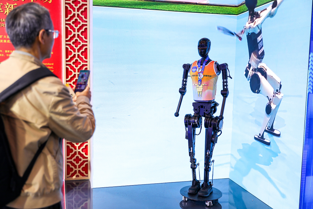 2025年11月6日,上海,第八届进博会中国馆展出的“天工Ultra”人形机器人。在北京亦庄半程马拉松暨人形机器人半程马拉松活动上,机器人获得冠军。视觉中国 图