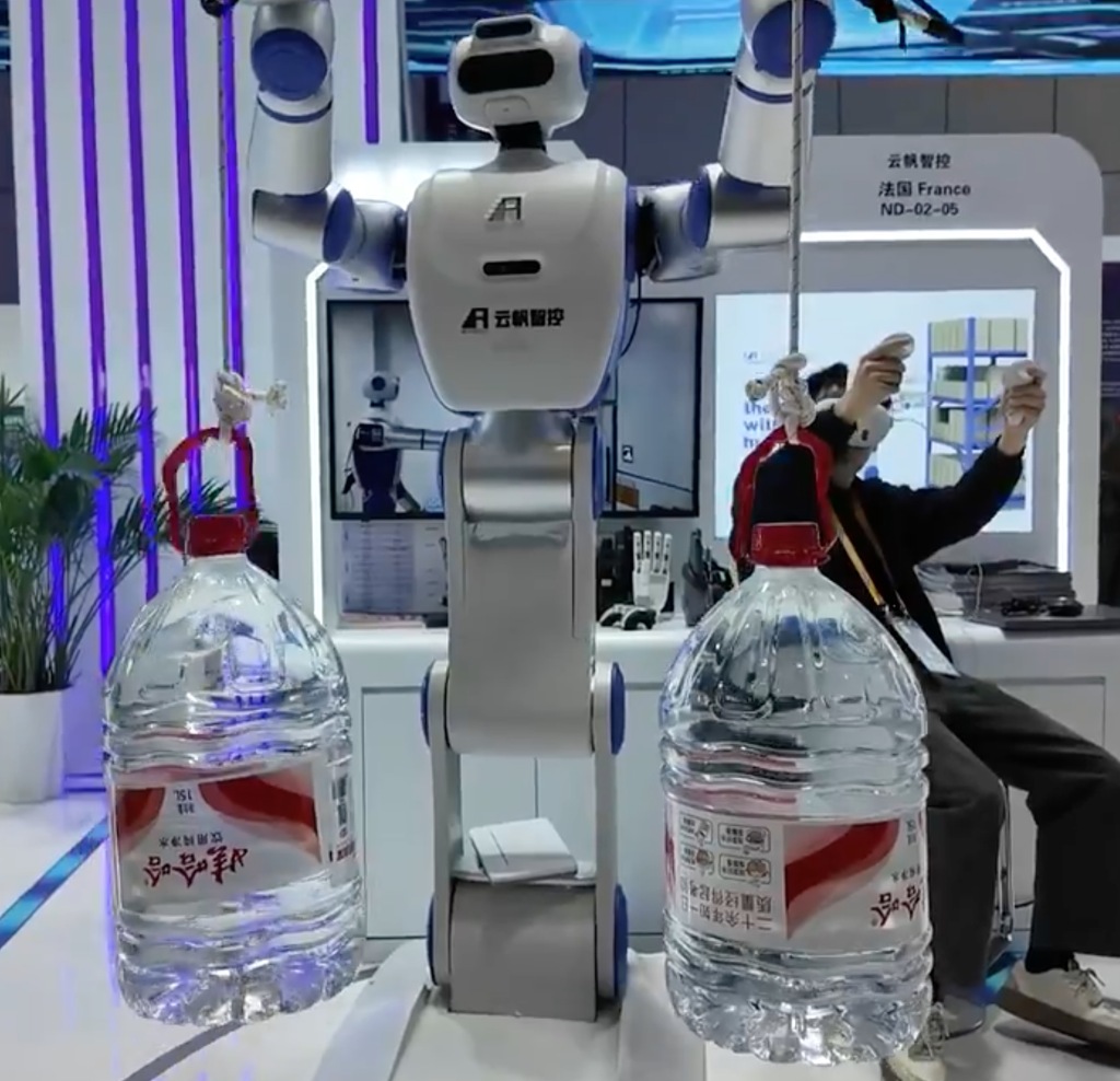 上海云帆智控机器人正在举起30公斤的重物(视频截图)。 新华社 图