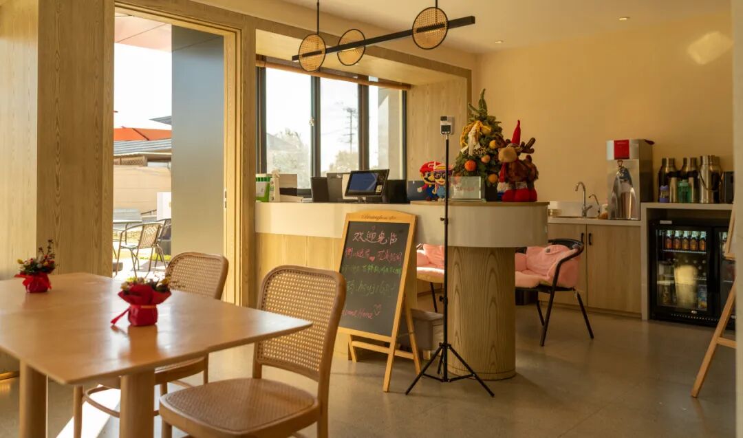 5.“在水一方”综合体:“在水一方”综合体位于水库村中心位置,三面环河,提供了餐饮、住宿、亲子游乐等多种服务。东侧为“在水一方”民宿、“水飨宴”餐厅,西侧为会议+休闲娱乐,包含㵘咖啡、好奇星球、一方礼堂等多个区域。