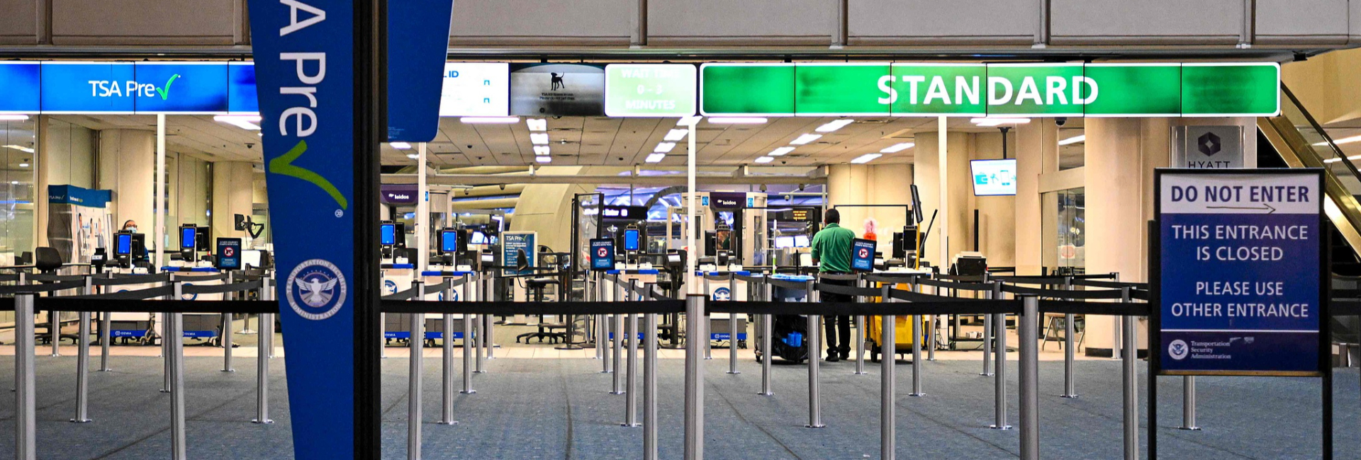 当地时间2025年10月30日,美国佛罗里达州奥兰多,奥兰多国际机场的美国运输安全管理局(TSA)柜台空无一人。视觉中国 图